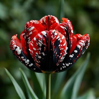 - Цвет: Яркий красный цвет с черным низом и белыми пятнами – это не просто окраска, а настоящее произведение искусства, которое делает тюльпаны Вельвет Файер незаменимыми для весенних цветников.
